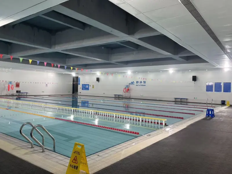 पौंडी पोखरीको बाहिरी भागमा धातुको माछा-स्केल प्यानल प्रणाली रहेको छ, जसले "पानीको प्रवाह" लाई बढाएर अनुहारको वक्रता र सूर्यको प्रकाशको दिशामा परिवर्तन हुने स्केल-जस्तो प्रकाश र छायाँ प्रभाव सिर्जना गर्दछ। इनडोर पोखरी क्षेत्रको सम्पूर्ण छत संरचना खुला छ, 48 मिटर फैलिएको ट्रसको साथ, संरचनात्मक तर्कको स्पष्ट अभिव्यक्तिलाई जोड दिँदै र खेल स्थलको स्थानिय स्तर र शक्तिको भावनालाई बलियो बनाउँदै। स्थलमा दुईवटा पोखरीहरू छन्: एउटा प्रतिस्पर्धा पोखरी र एउटा प्रशिक्षण पोखरी। प्रतिस्पर्धा पोखरी 50 मिटर लामो र 25 मिटर चौडा, 8 लेन संग; प्रशिक्षण पोखरी 50 मिटर लामो र 17 मिटर चौडा छ, 6 लेनहरु संग। दुबै पोखरी २ मिटर गहिरो छन्।